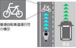 自転車および歩行者専用標識や道路上に普通自転車道通行可の標示が有る場合は、歩道を通行することが出来ます。