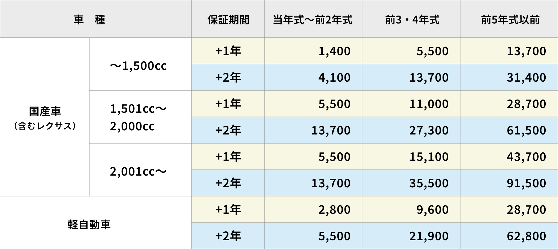 1日あたりわずかなご負担で、基本保証(1年)の後も2年間まで延長保証(有償)を受けられます。